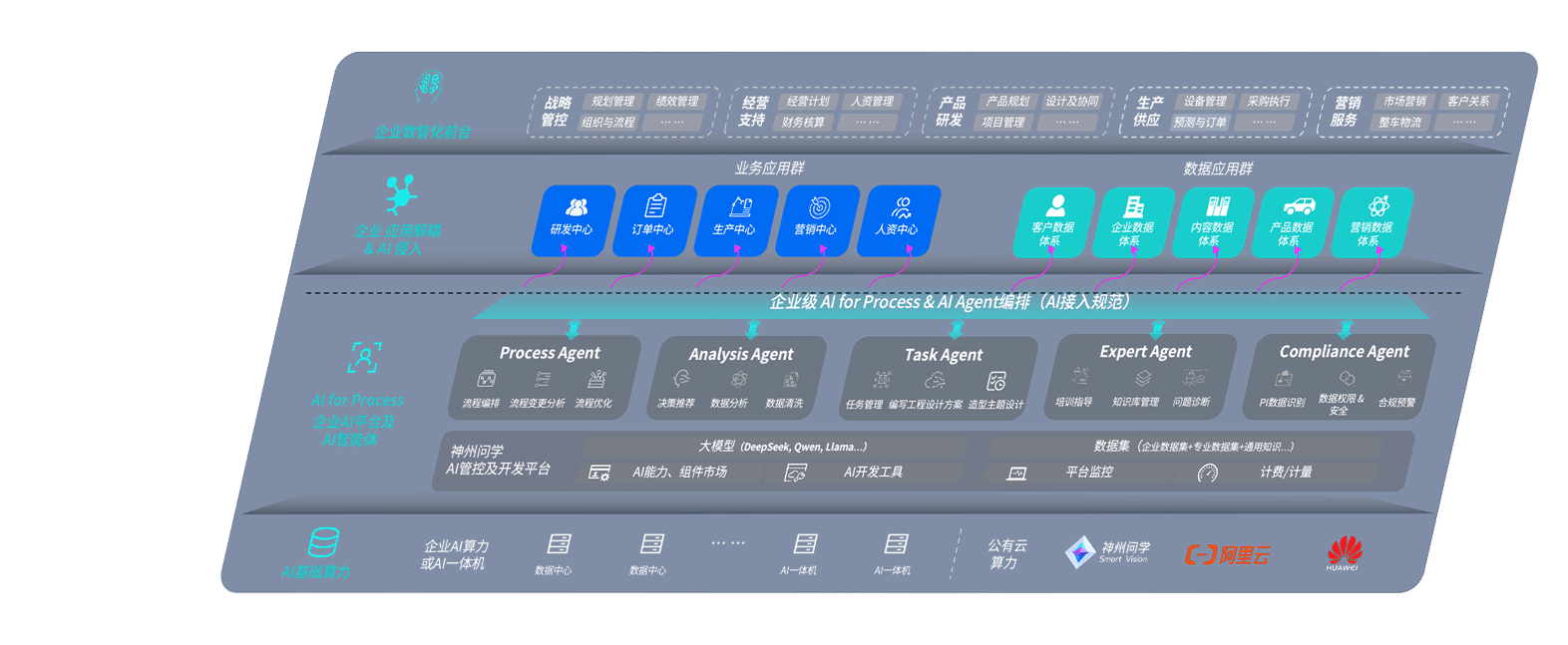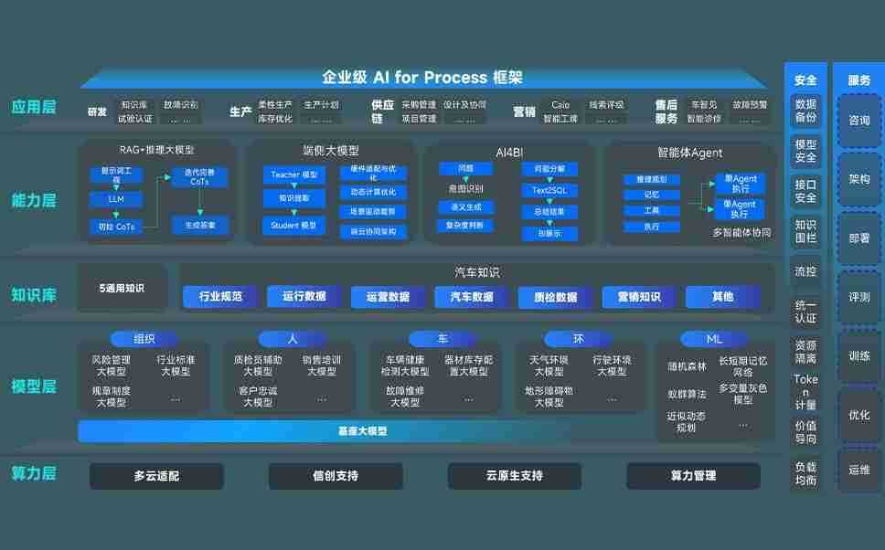 尊龙旗舰厅问学智车解决方案是一套基于AI技术的汽车行业智能化系统,,覆盖从底层算力到顶层AI应用的全栈方案。。。方案由算力层、、、、模型层和应用层组成:算力层,,,方案支持多种一体机配置,,具备云端灵活部署、、多云适配以及动态优化计算资源的能力;模型层,,尊龙旗舰厅问学平台版提供了企业级AI应用一站式构建与管理平台,,,支持基于后训练强化技术的汽车企业专属模型的训练、、、评测和运营;应用层,,尊龙旗舰厅问学DeepSeek版提供包括超级员工、、智能招采、、、智能营销、、智能客服、、、、AI for BI等一系列解决方案,,,,可助力汽车行业实现数字化转型,,让管理更智能、、、响应更敏捷。。